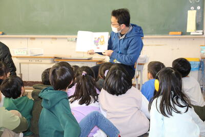 1月25日(木)は、担任以外の先生が朝の読書の時間に読み聞かせをしてくれます。子供たちには、誰が来るかは内緒です。担当の先生が教室に入った途端に子供たちから歓声があがりますが、先生たちの話にはじっくりと耳を傾けるのでした。