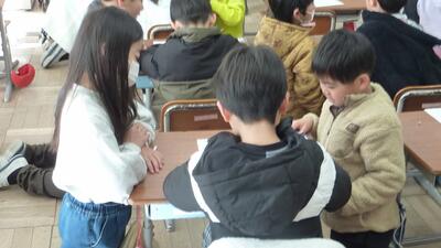 2月7日(水)、来年度新1年生となる園児が体験入学にきました。1年生は、園児に自分たちの席を譲り、正しい姿勢や鉛筆の持ち方を親切に教えていました。