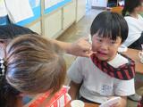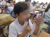 日立市健康づくり推進課から講師をお招きして、2年生が歯みがき教室を行いました。「なぜ虫歯になるのか」「気を付けるおやつの食べ方」などを教わった後、染め出し液で歯を染色しました。お家の方も何人か参加していたので、手伝ってもらう児童も。「うわあ、真っ赤っかだ」という驚きの声も聞こえてきました。