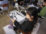 たのしく うつして 投稿: 承認者 (15:11) 3年生の図工です。画用紙の切り取った部分に絵の具を塗り、切り絵のようにできた模様や形を楽しんでいました。幾何学模様や動物のシルエットが、次から次へと生まれてきます。絵の具を色を組み合わせる工夫もあり、児童の豊かな発想に驚かされます。 -